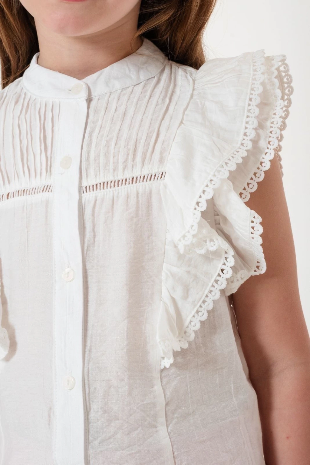 Camisola gasa de algodón con detalles tablada y volados con puntilla.