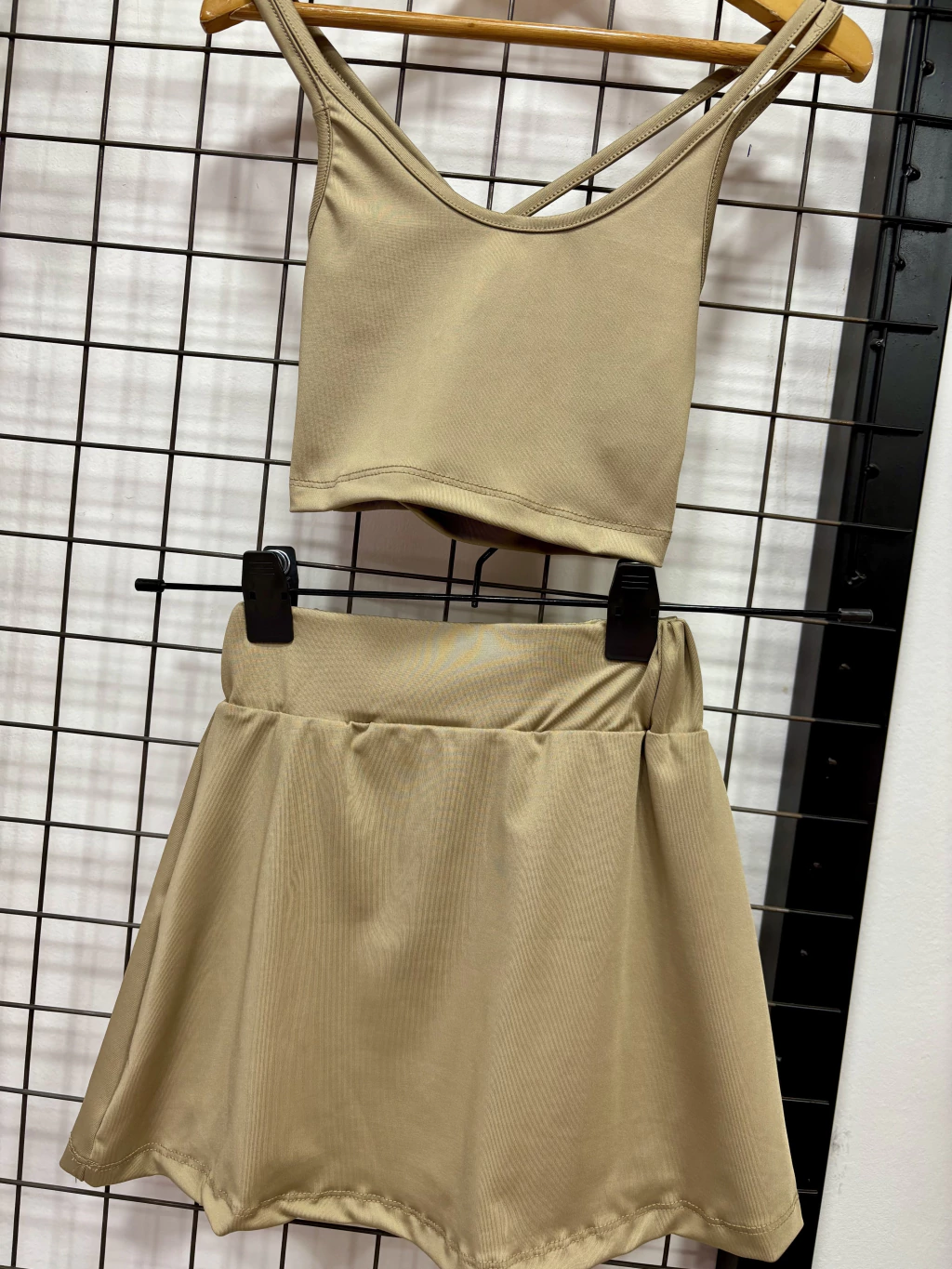 Conjuntos deportivo de lycra top con tiras + short pollera