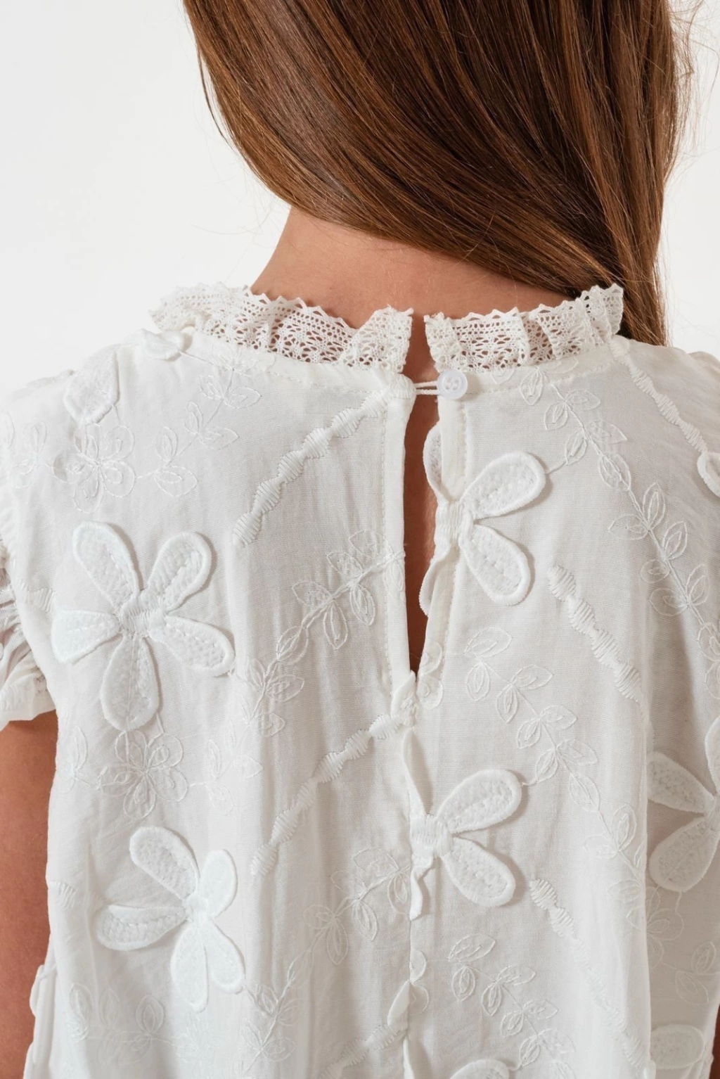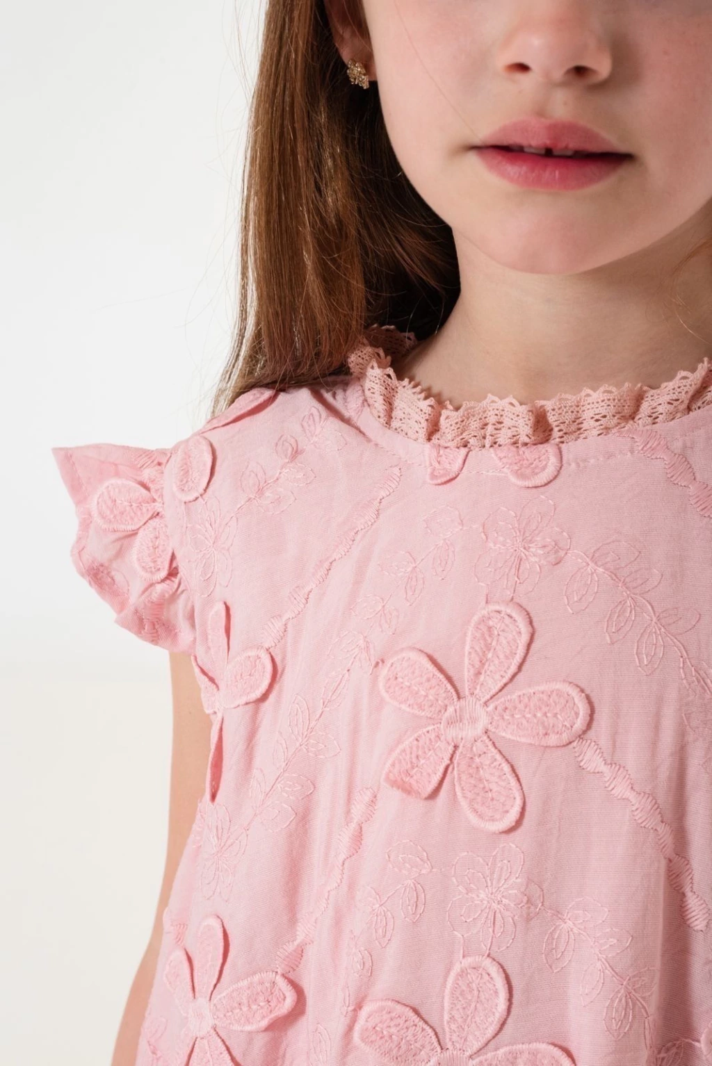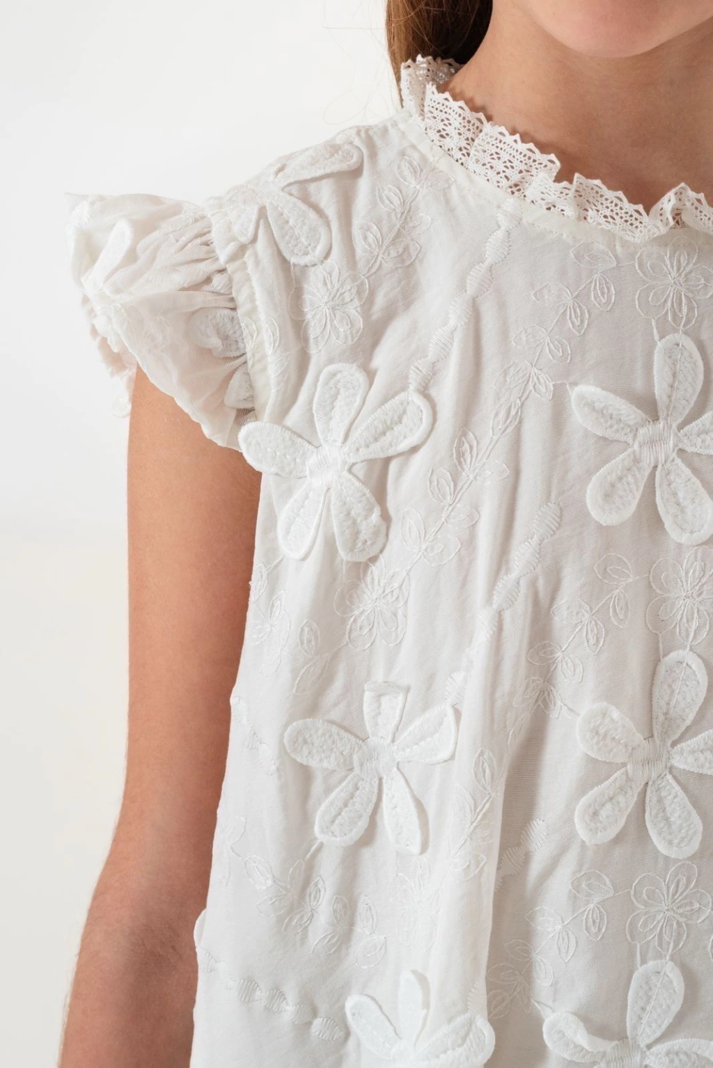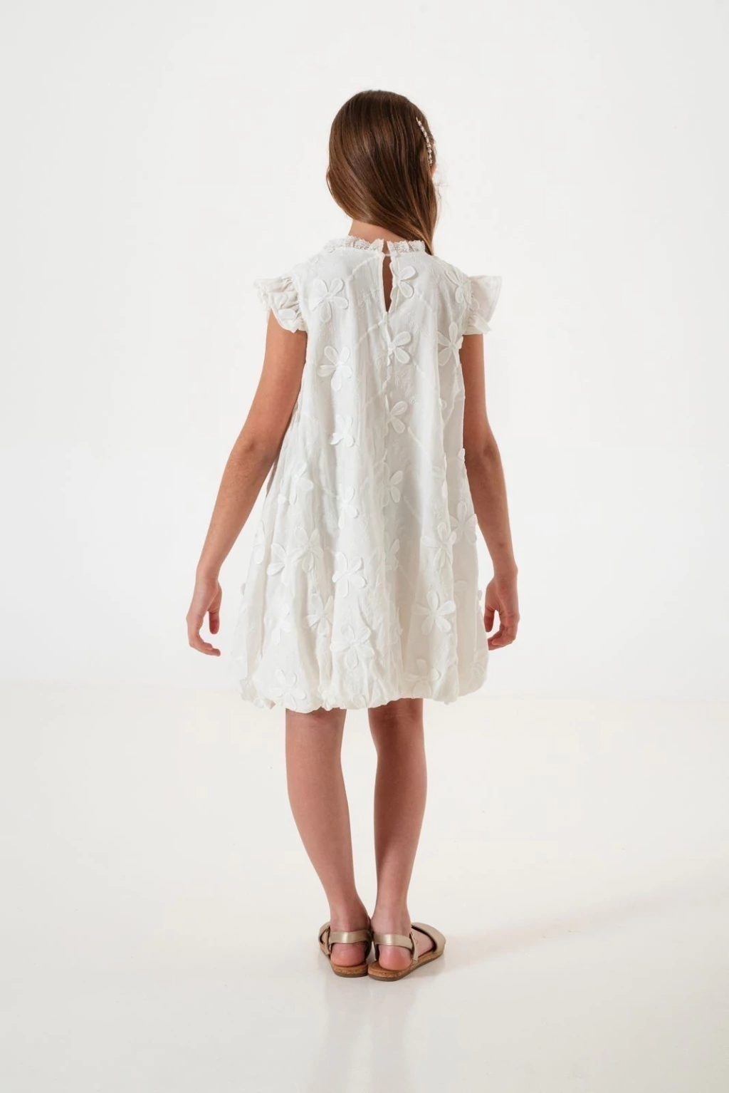 Vestido con apliques de flores bordadas en relieve, con efecto globo.