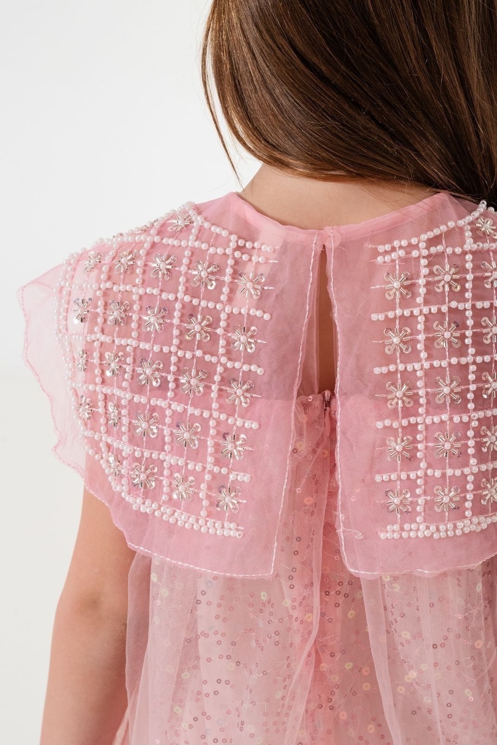Vestido doble tul, con cuello de lentejuelas bordadas